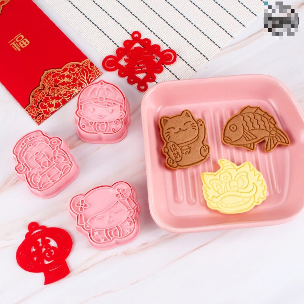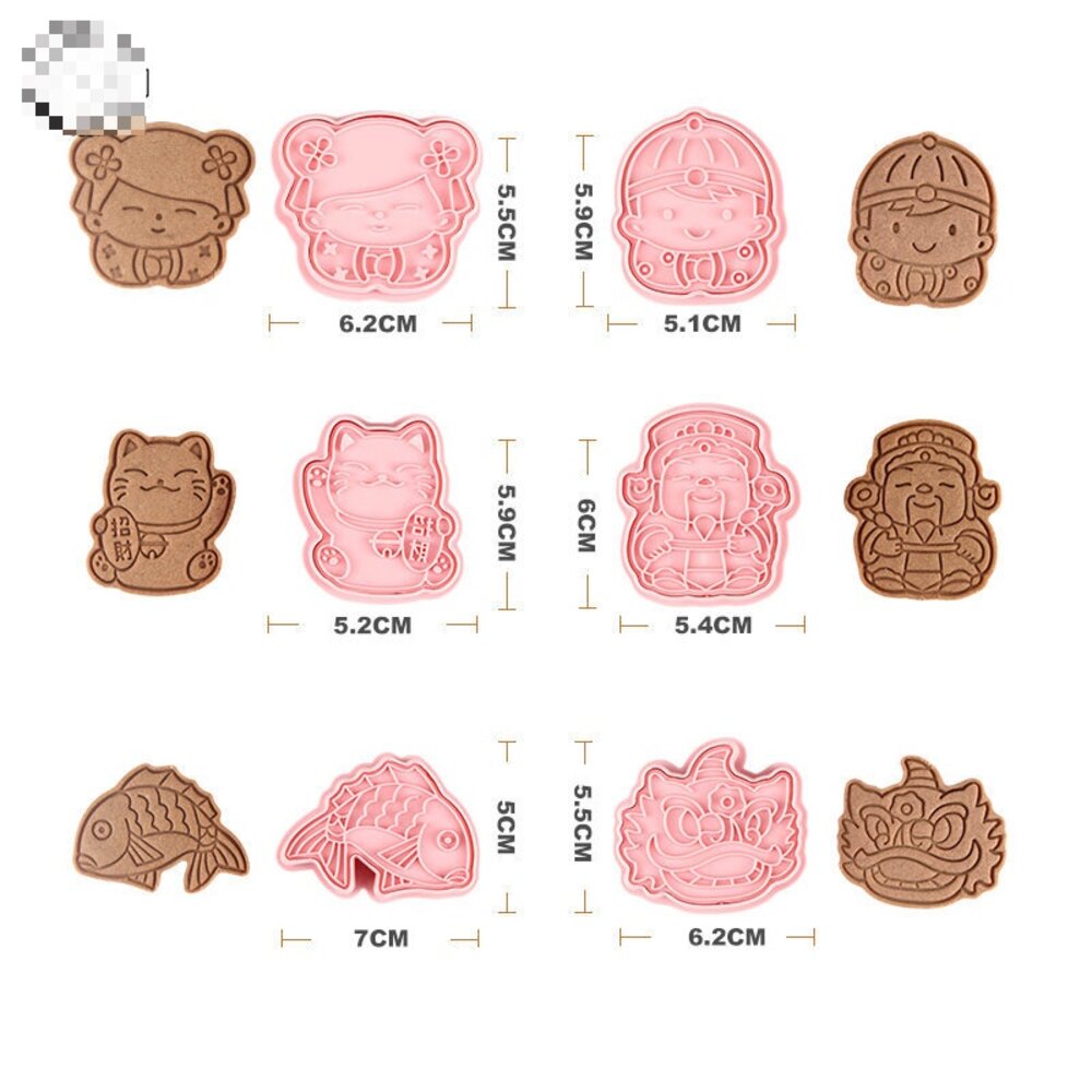 餅乾模6件組 財神爺 招財貓 舞獅 鯉魚 拜年 春節 《巧緻》【Y092】 ,新年B款