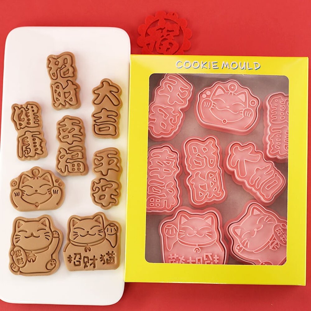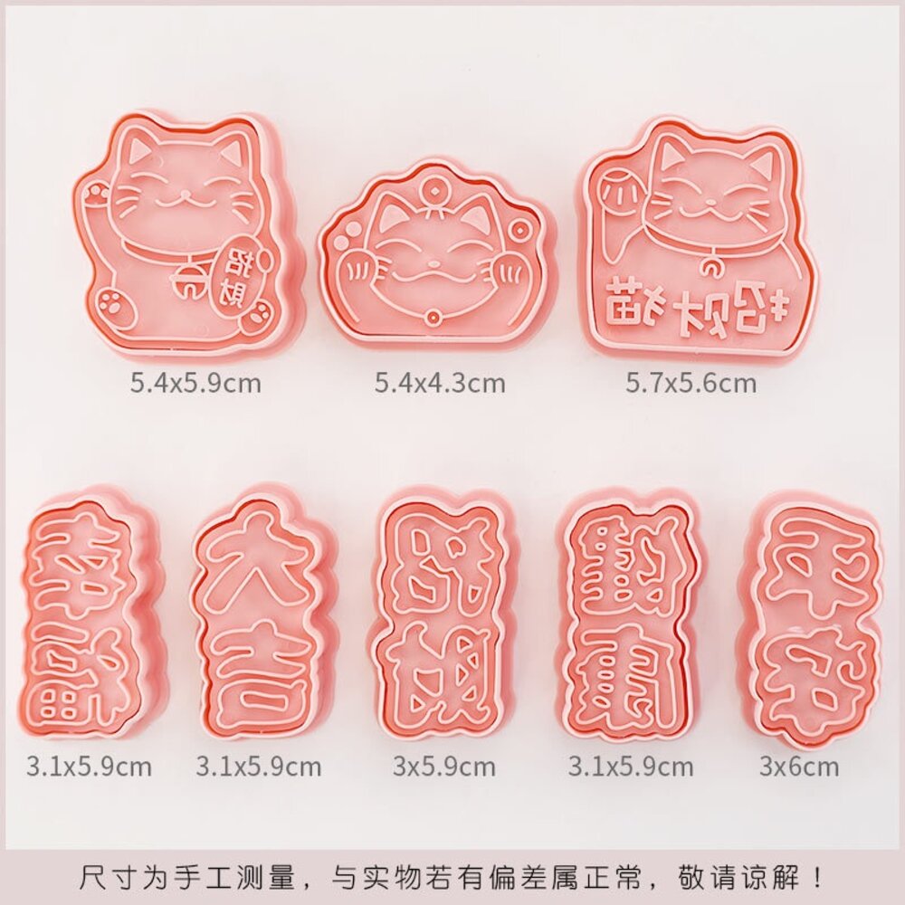 招財貓 餅乾模8件組 平安 幸福 健康 招財 大吉,餅乾模