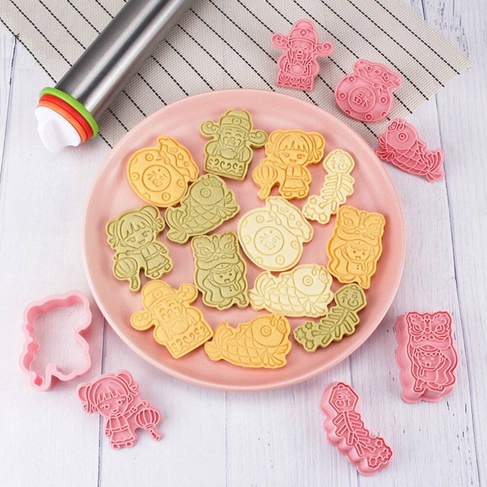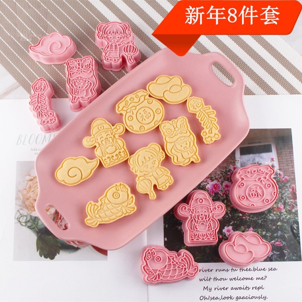 春節 餅乾模 6件組 8件組 福袋 舞獅 鞭炮 元寶 年年有餘 財神爺 拜年 燈籠 祥雲 ,餅乾模