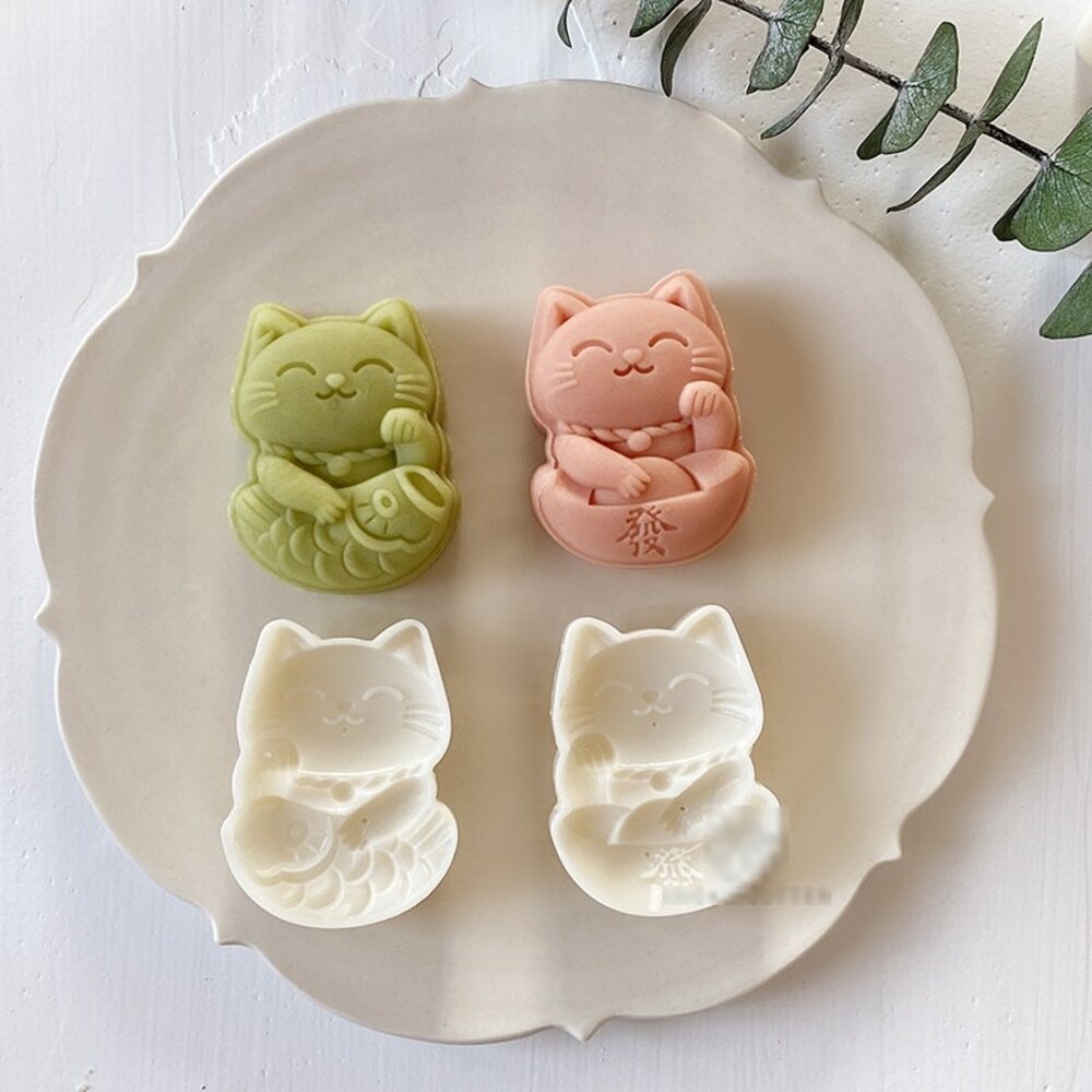 請勿進烤箱或用開水燙 50g 冰皮月餅壓模 50克 綠豆糕壓模 冰皮月餅模 月餅模 中式月餅模 錦鯉招財貓,錦鯉貓月餅模