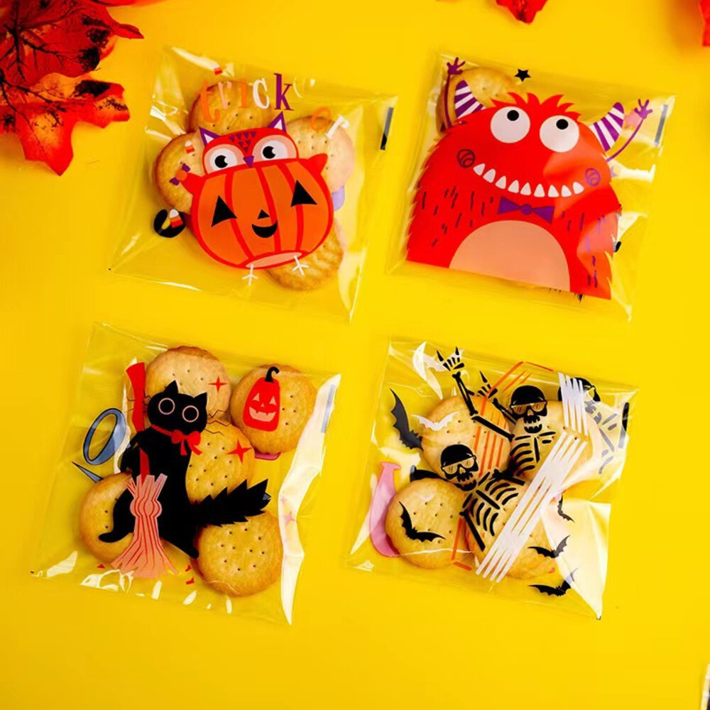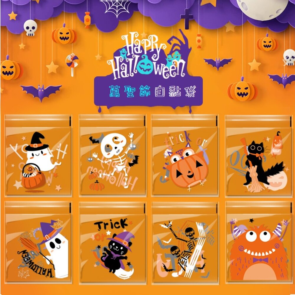 100入 萬聖節 Happy Halloween 自黏袋 餅乾袋 點心袋 西點袋 烘焙包裝 ,萬聖節自黏袋