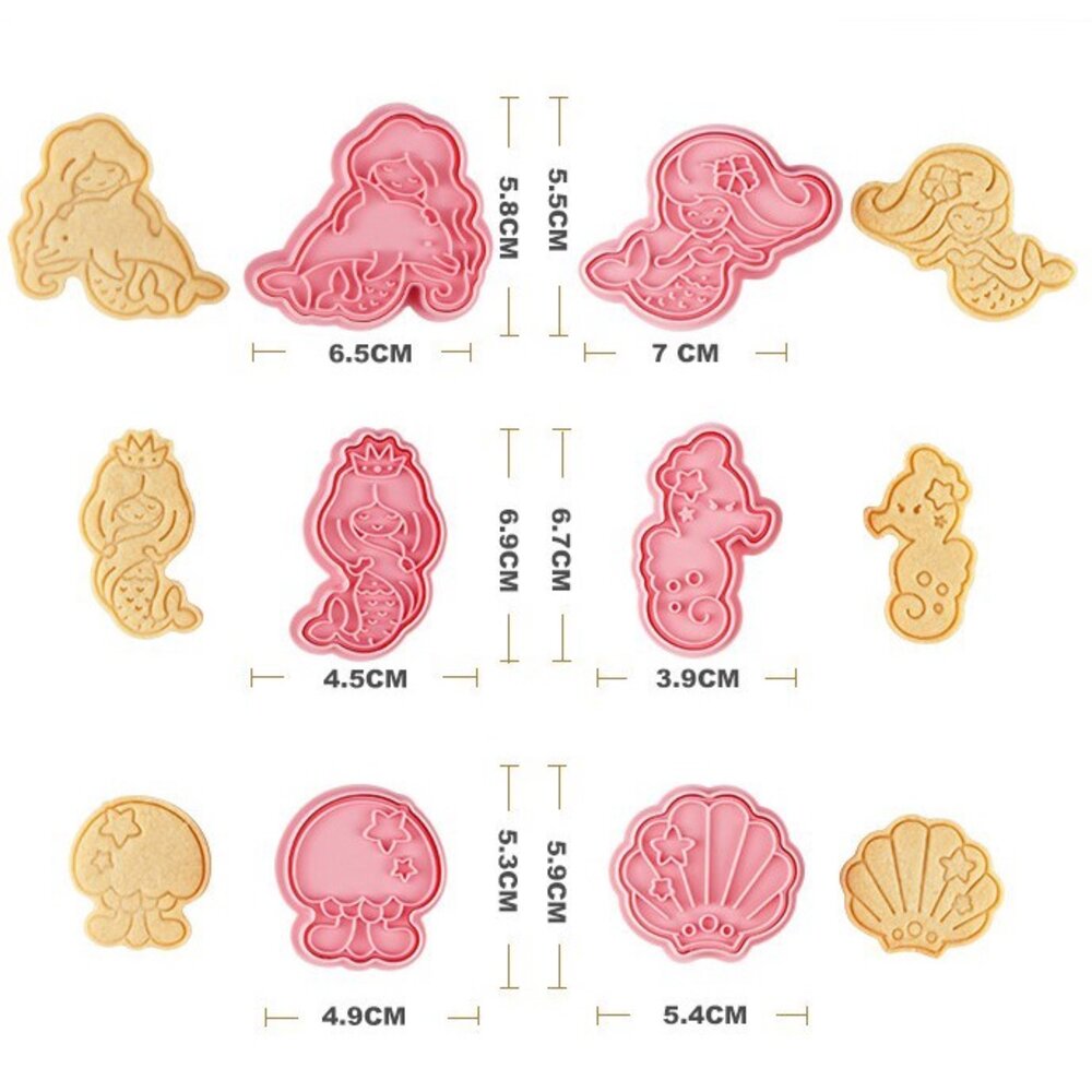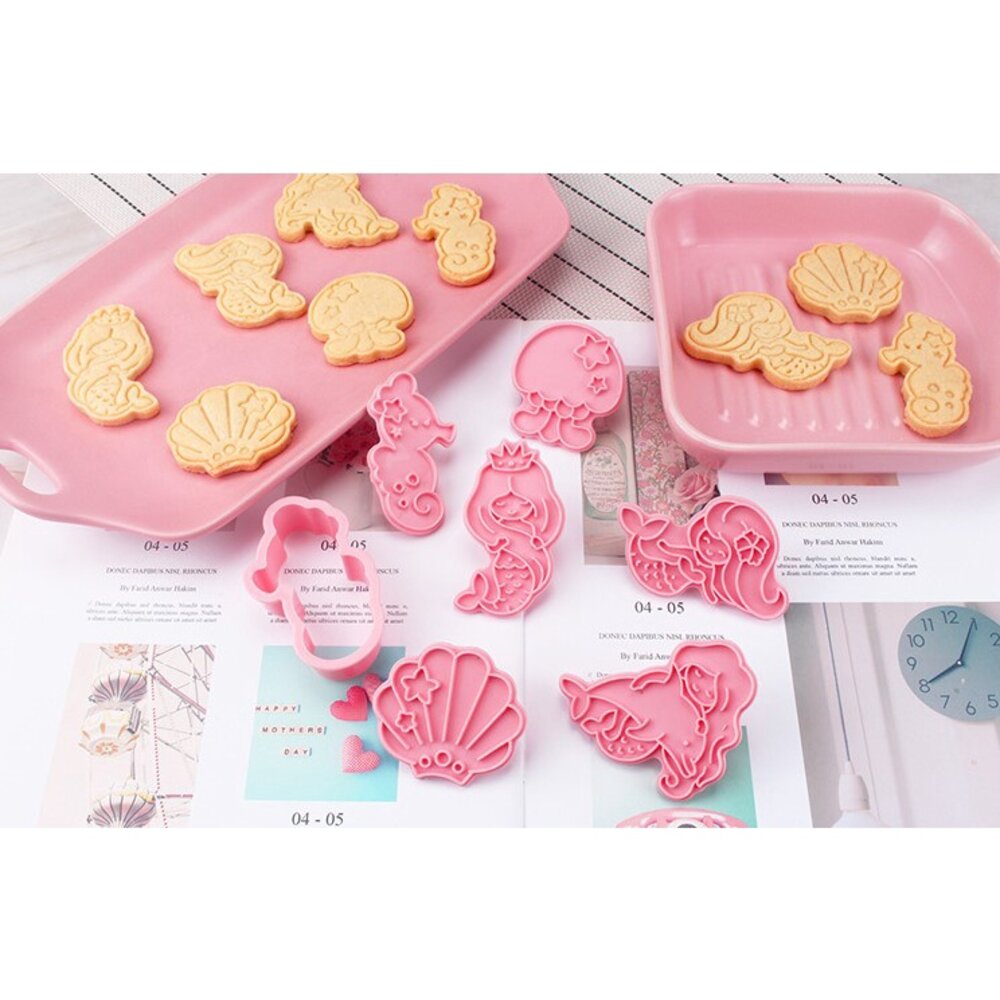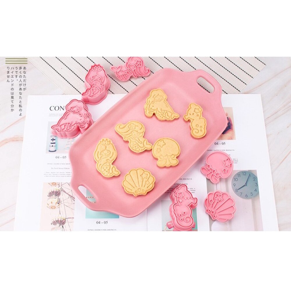 美人魚餅乾模 6件組 海洋系列 人魚 海馬 水母 扇貝 貝殼 餅乾壓模 ,餅乾模