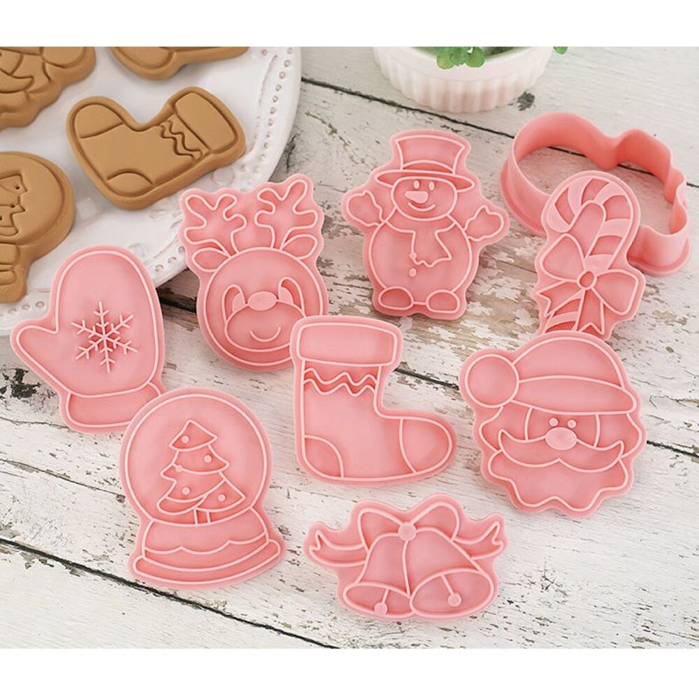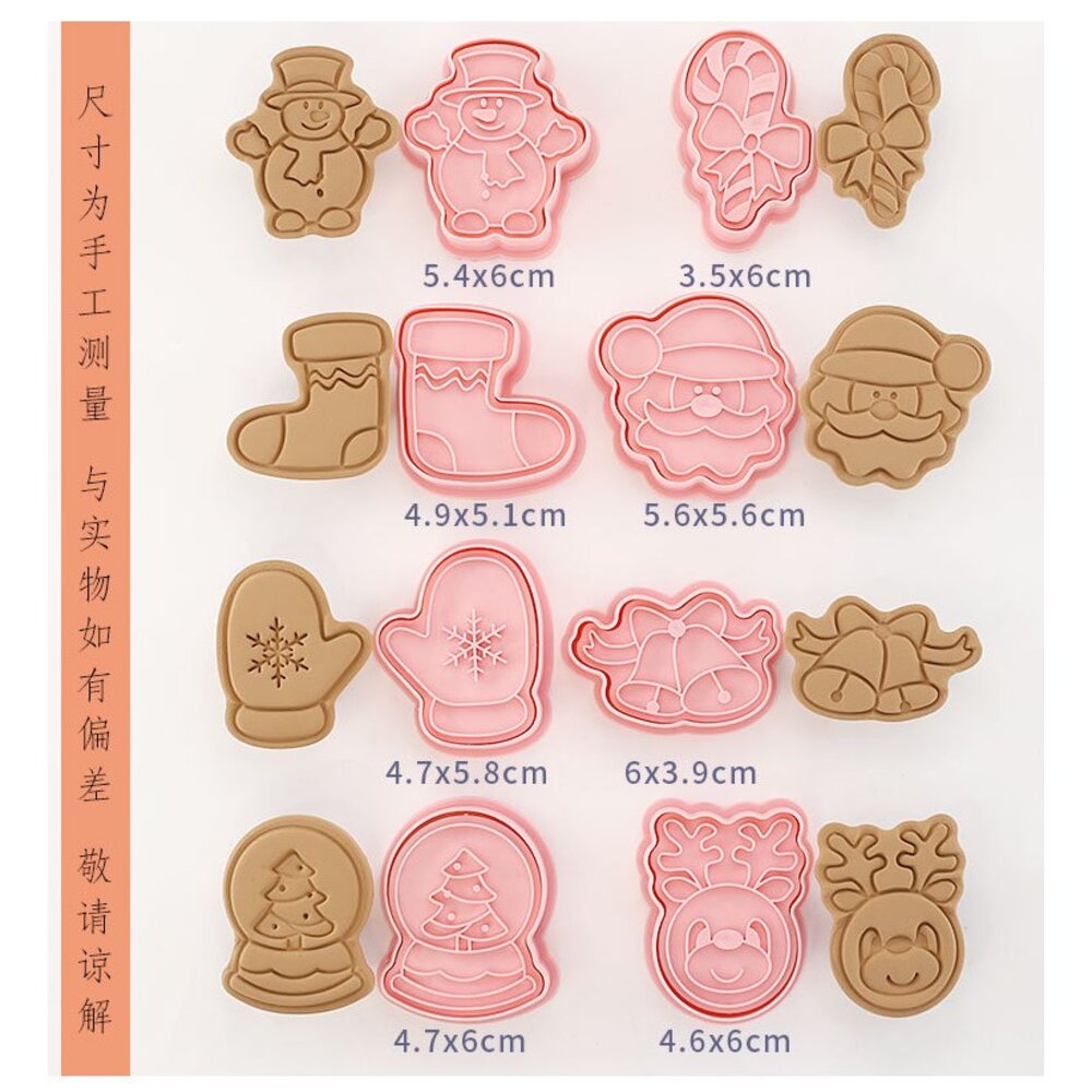 B款 聖誕節餅乾模 8件組 糜鹿 聖誕老人 雪人 薑餅人 聖誕樹 雪花手套 水晶球 柺杖糖 襪子 ,餅乾模
