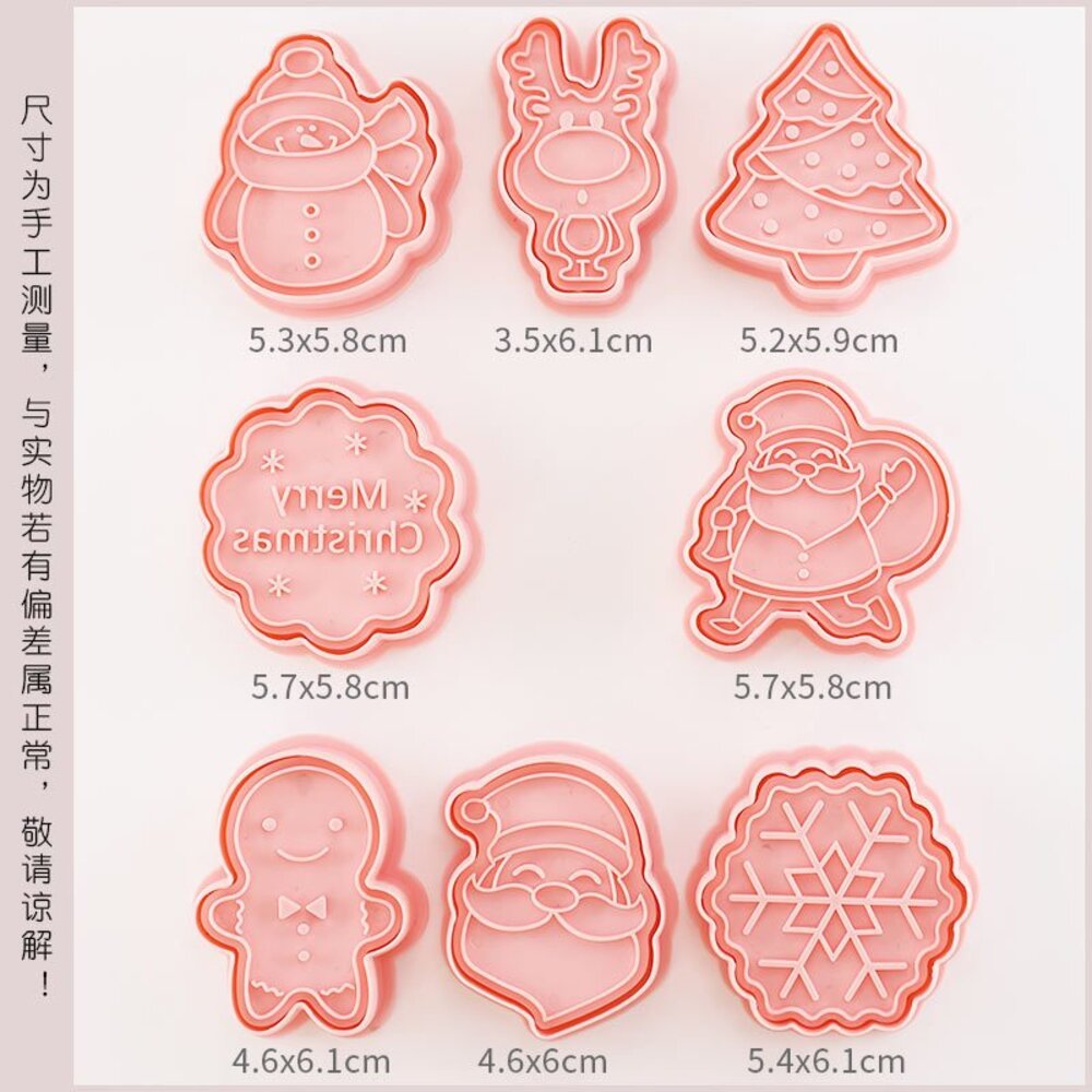 聖誕節餅乾模 8件組 糜鹿 聖誕老人 雪人 薑餅人 聖誕樹 雪花 ,餅乾模