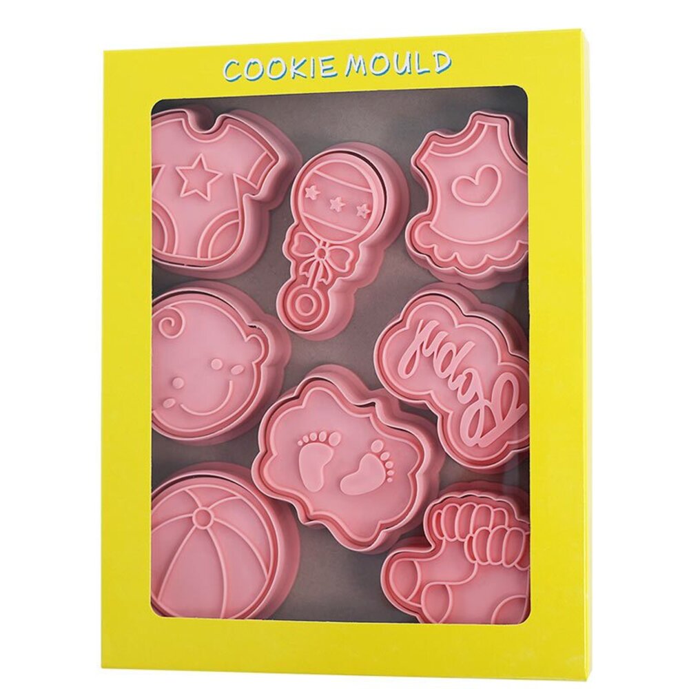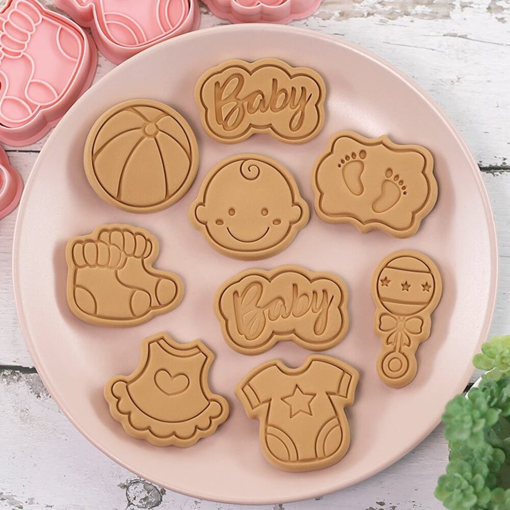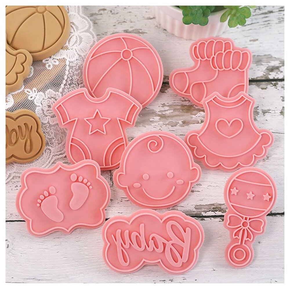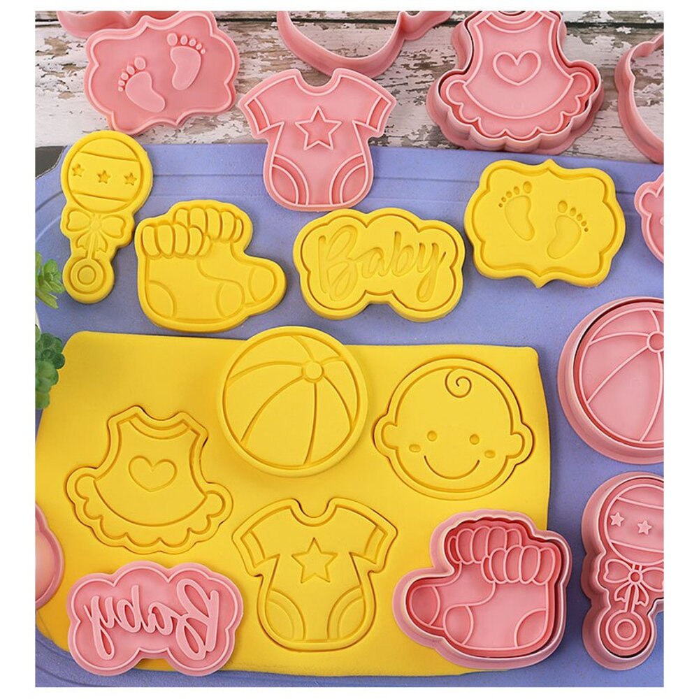 寶寶餅乾模 8件組 收涎餅乾模 手搖鈴 圍兜兜 包屁衣 球 BABY 小腳丫 襪子 餅乾壓模 ,餅乾模