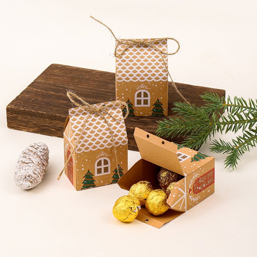聖誕節包裝盒 房子造型盒 聖誕小房子 牛皮紙盒 喜糖盒 糖果盒 聖誕造型盒 小盒子 ,房子盒