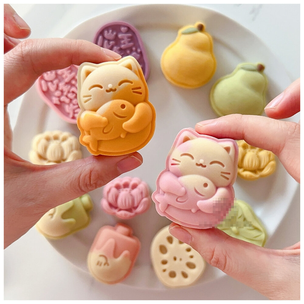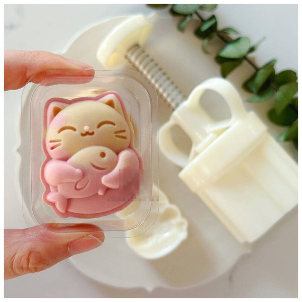 請勿進烤箱或用開水燙 可愛招財貓 30g~50g 冰皮月餅壓模 50克 綠豆糕壓模 冰皮月餅模 月餅模 錦鯉招財貓,迷你錦鯉招財貓月餅模
