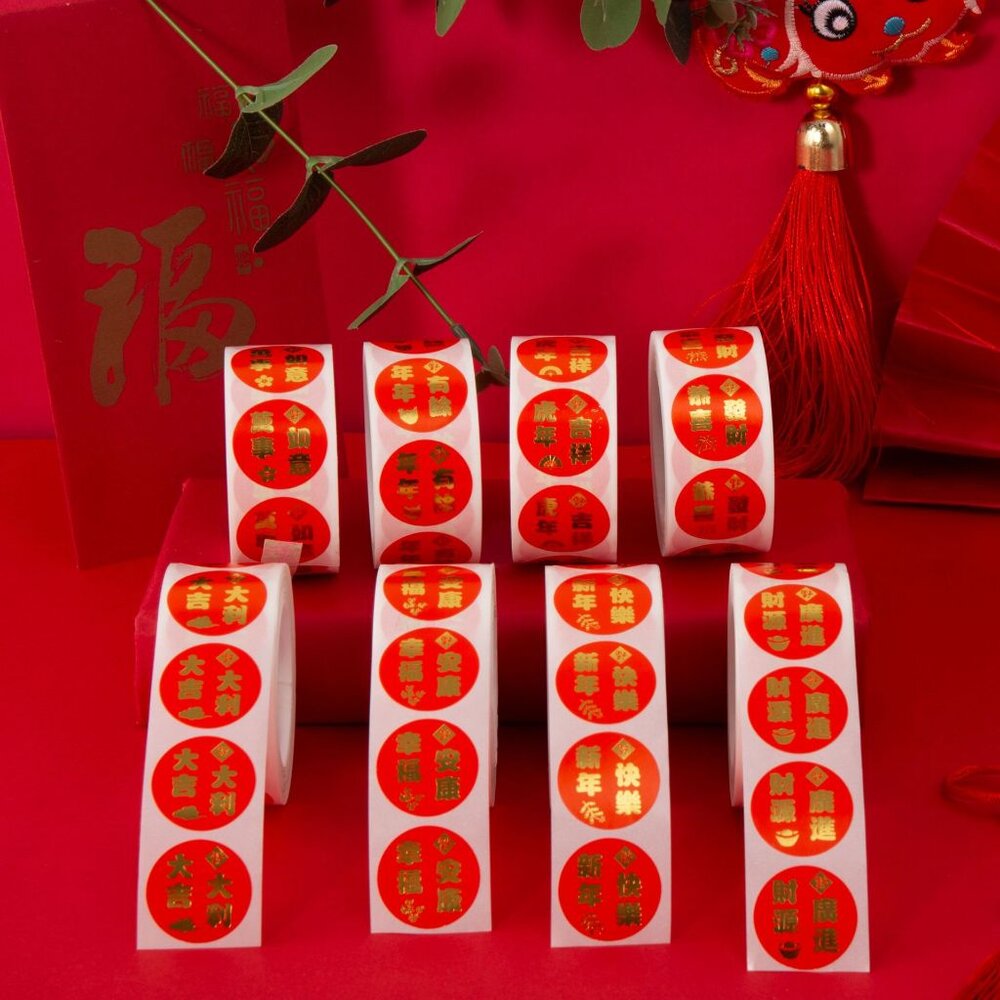 500貼 2.5cm 春節 新年快樂 年年有餘 幸福安康 恭喜發財 萬事如意 卷裝貼紙 貼紙 ,燙金新年貼紙卷
