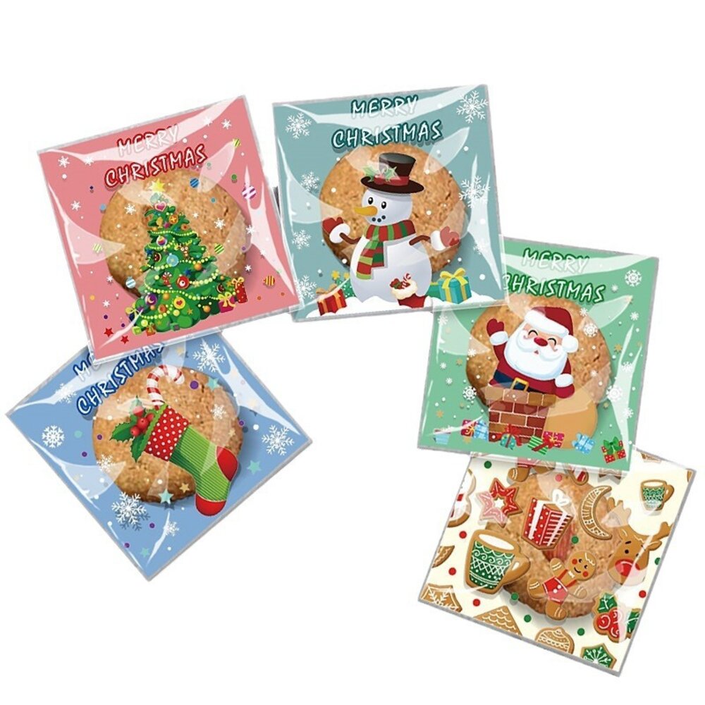 五款混裝 聖誕節 聖誕老人 雪人 自黏袋 餅乾袋 點心袋 聖誕樹 烘焙包裝 聖誕節包裝袋 ,聖誕節自黏袋