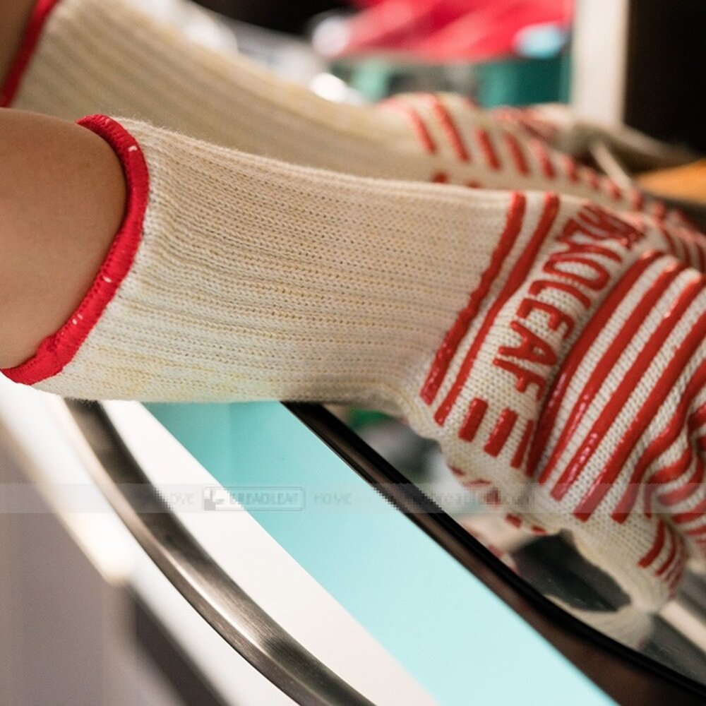 數量:1支 尺寸:總長34.5cm;手掌約15cm(相當於L號) 材質:純棉+矽膠防滑 顏色:白底紅色防滑條 耐熱溫度:220℃ 產地:中國