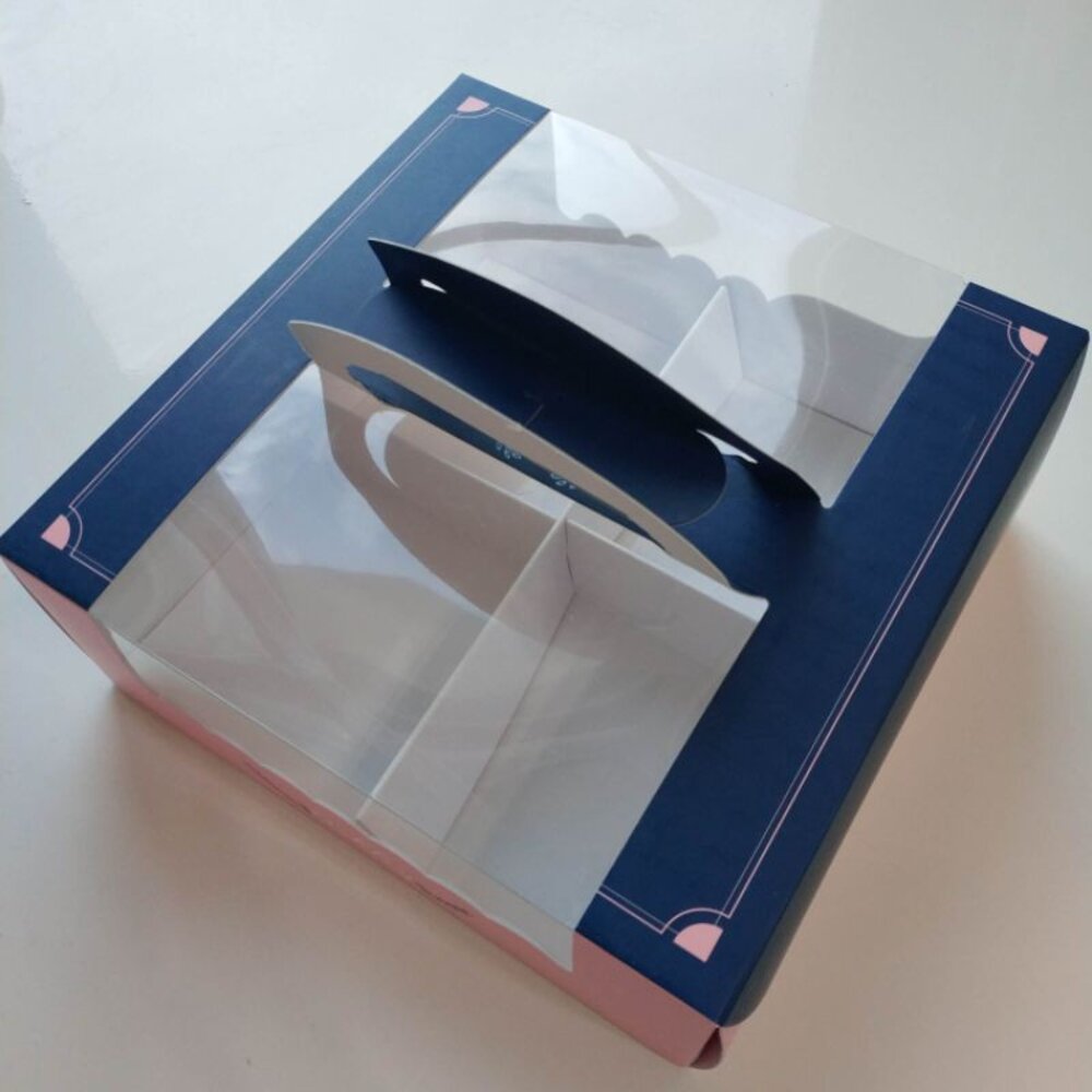 4入塔盒 烘焙包裝 手提方形蛋糕盒 紙盒 蛋糕包裝盒 水果塔盒 蔓語 6吋 巧緻 ,蔓語手提開窗派盒