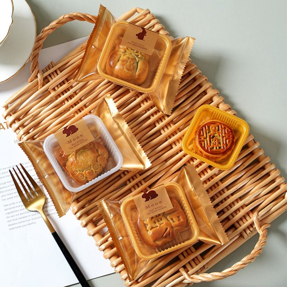 數量:100±2入(2種圓案混款,不含內托) 規格: 小:9×11.5cm(約可裝50克月餅) 中:10×13.5cm(約可裝80克月餅) 大:11×15cm(約可裝100克月餅) 材質:塑膠 ※需使用熱封機封口※