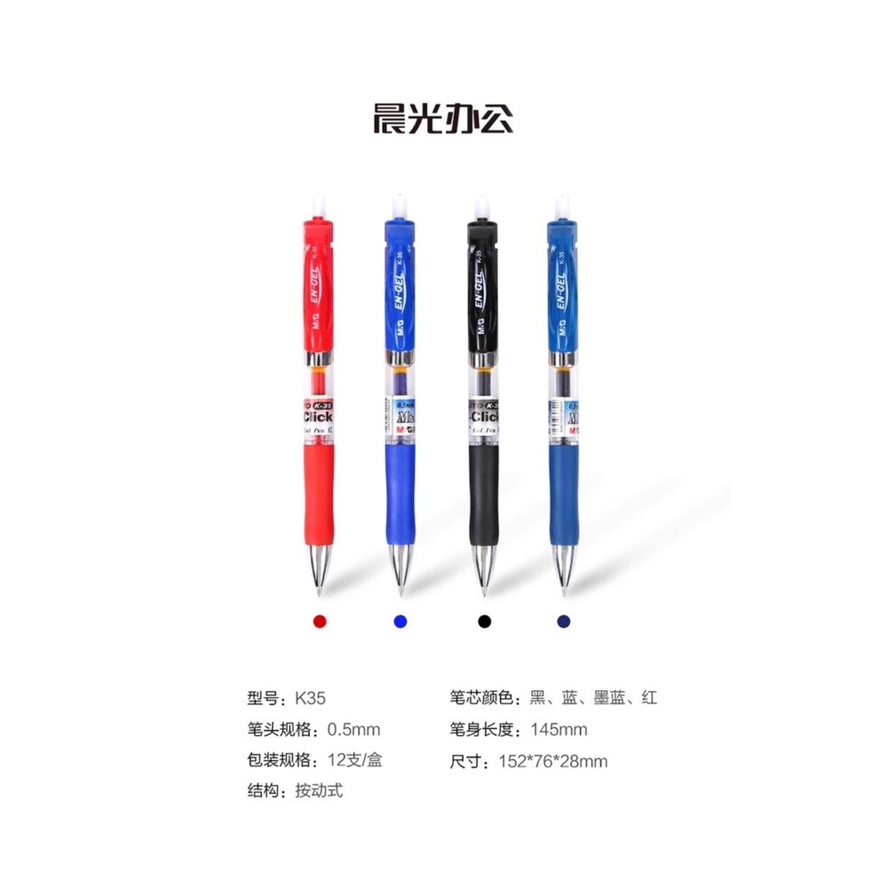 晨光 k35 原子筆 筆桿材質:塑膠 尺寸:總長15公分 顏色:紅色/黑色/藍色/藍黑色 產地:中國
